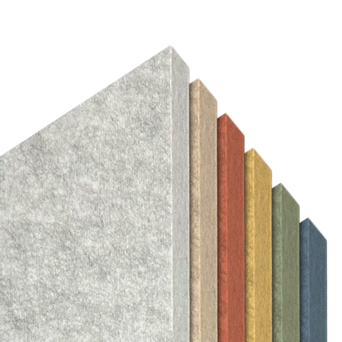Die Paneele bestehen aus thermisch verfestigter, offenporiger Polyesterwatte. Das Material ist die erste Wahl zur wirkungsvollen Optimierung der Raumakustik im anspruchsvollen Bereich.